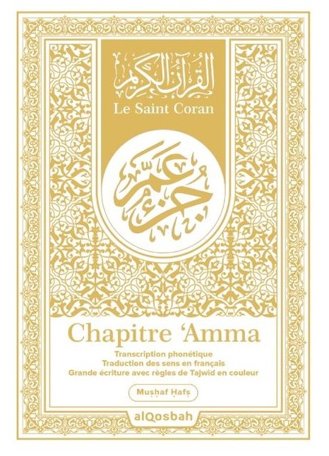 Le Saint Coran Chapitre ‘Amma (Grand format) : français-arabe-phonétique avec règles de Tajwîd en couleur et vidéos Codes QR- Couverture Blanche dorée – LIV – Traduction Pr Muhammad Hamidullah – AlQosbah